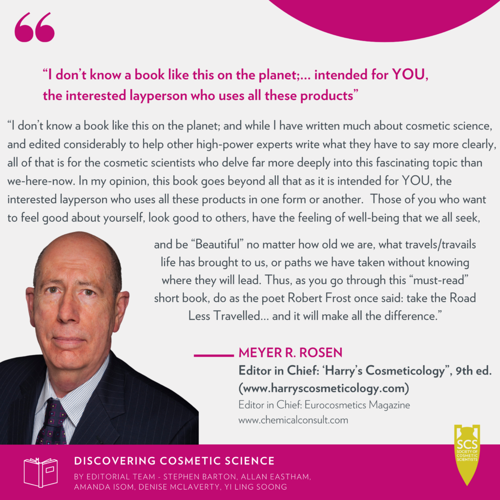 Meyer R. Rosen, President of Interactive Consulting, Inc. and Editor-in-Chief of Eurocosmetics Magazine is pleased to announce the Royal Society of Chemistry’s publication of their new book “Discovering Cosmetic Science.”. Mr. Rosen is acknowldeged by the RSC as one of the book’s peer reviewers.